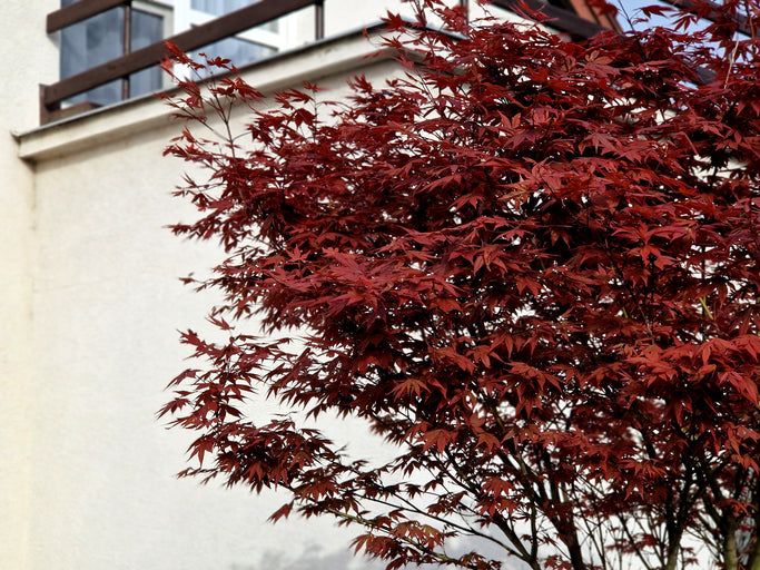 Deep crimson red in spring and summer, turning vibrant crimson or scarlet in fall, finely dissected leaves.