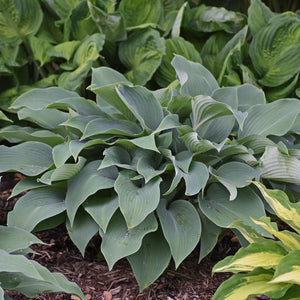Halcyon Hosta is a striking perennial plant known for its heart-shaped, blue-green leaves that create an attractive ground cover. It features fragrant purple flowers that bloom in the summer, making it a wonderful addition to shaded gardens.