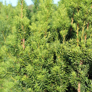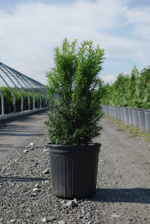 Hick's Yew is an evergreen shrub known for its dense and upright growth habit. It features dark green foliage and can provide year-round interest with its unique, soft texture.