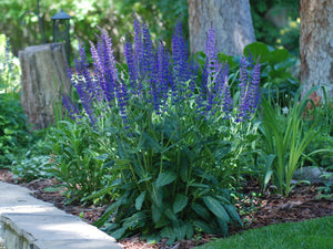 May Night Salvia is a perennial plant characterized by its dense spikes of vibrant purple flowers that attract pollinators. With aromatic foliage and a long blooming season, it adds a stunning visual appeal to any garden.