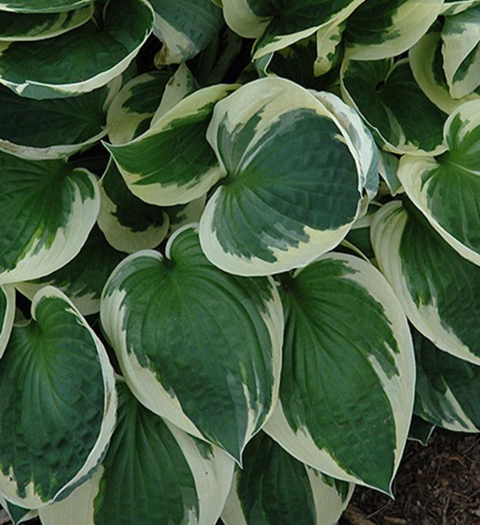 Patriot Hosta is a perennial plant characterized by its striking green leaves with distinctive white margins, which create a bold contrast and add visual interest to garden spaces. This hosta is also known for its resilience and ability to thrive in shaded areas.